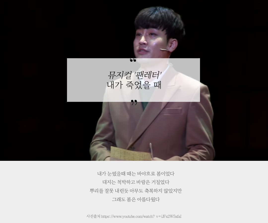 | [뮤지컬 넘버] 더 라스트 키스 - '너 하나만' 가사 (0) | 2020.07.11 |