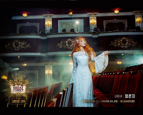 정은지 배우는 '응답하라 1997' 로 많은 사랑을 받은 APINK 멤버로 뮤지컬은 2012년 리걸리 블론드, 2014년 풀하우스로 캐스팅되어 공연했었습니다. 이후엔 방송과 노래로 많은 사랑을 받았으며 이번 '그레이트 코멧' 에서는 어떤 모습을 보여줄지 기대가 되는 배우입니다.