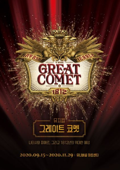 그레이트 코멧은 2020년 9월 15일 부터 2020년 11월 29일까지 유니버설 아트센터에서 공연이 진행됩니다.