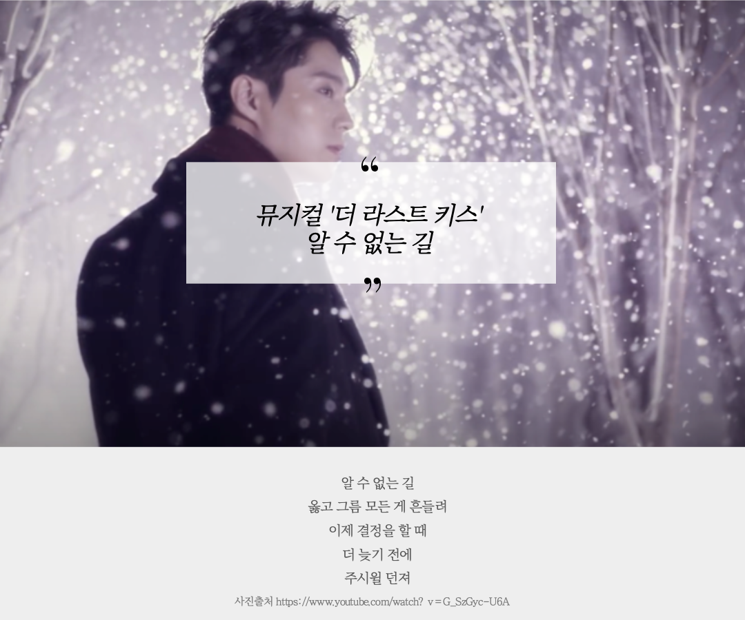 [뮤지컬 넘버] 더 라스트 키스 - '사랑이야' 가사 (0) | 2020.06.22 |
