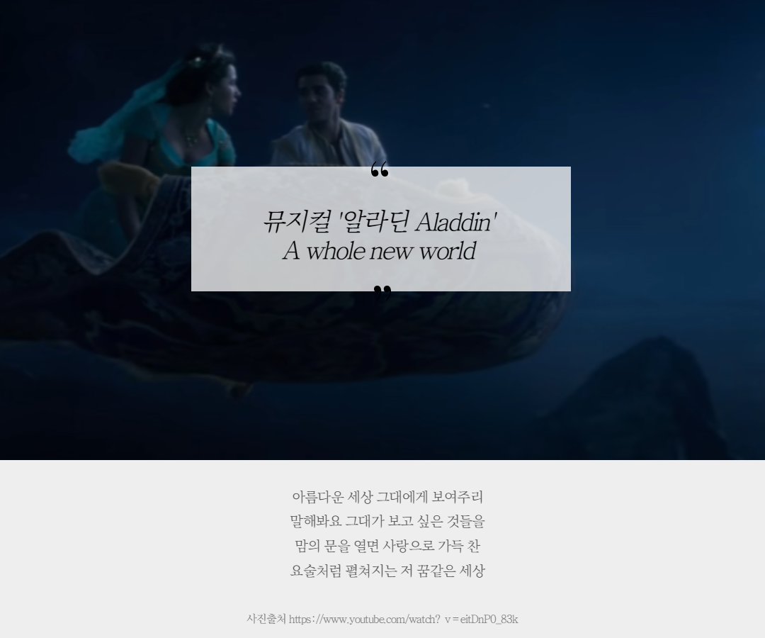 알라딘 (Aladdin) - '아름다운 세상 A whole new world' 가사 Lyrics